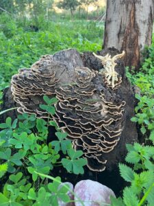 Fungi are also nature’s recyclers. When branches fall, plants die, or trees are cut, fungi slowly break this material down. Over time wood, leaves and plant fibres are transformed into organic matter that feeds the soil again.
